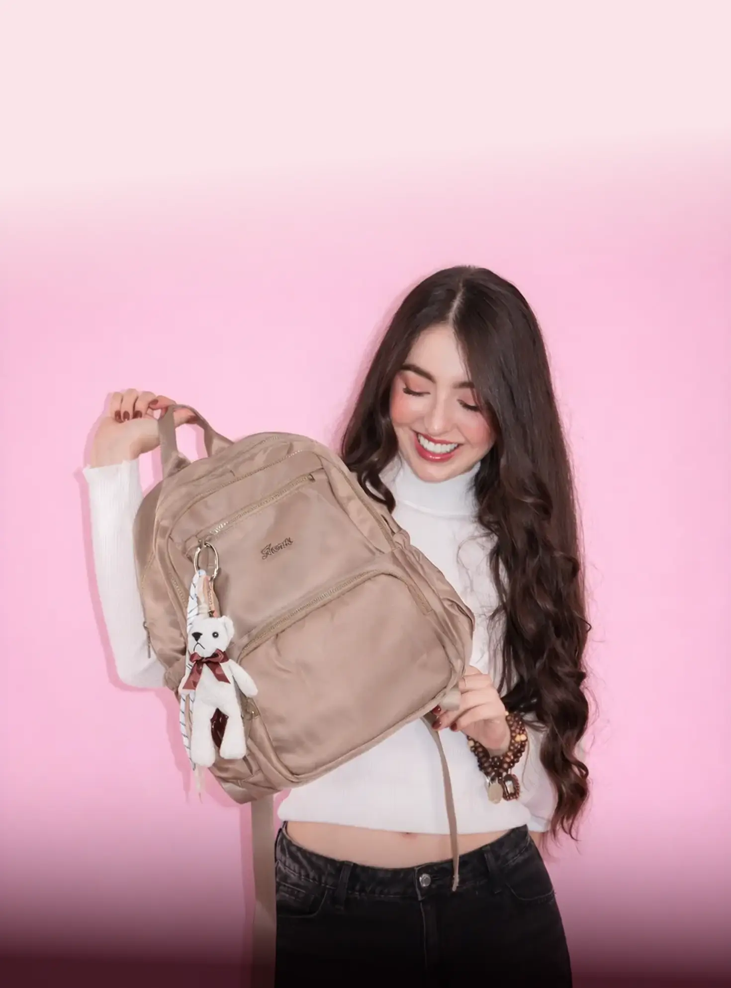 Amamos a los animales, por eso somos 100% Cruelty Free. Usamos cuero vegano de alta calidad y nuestra exclusiva tela 'Travel', que es resistente, ligera y fácil de limpiar.